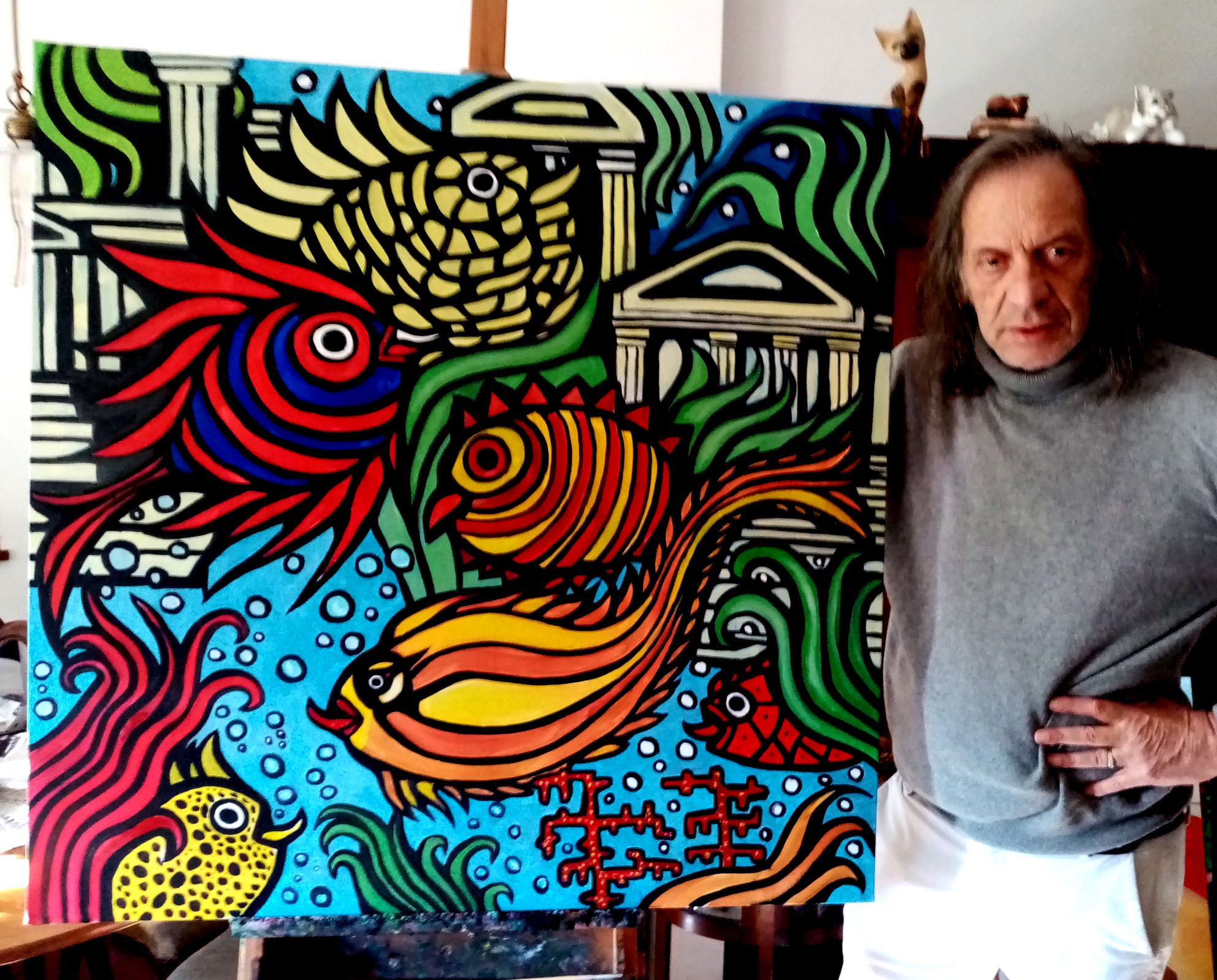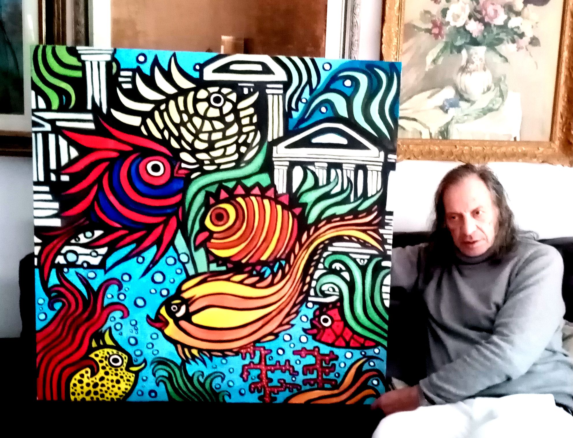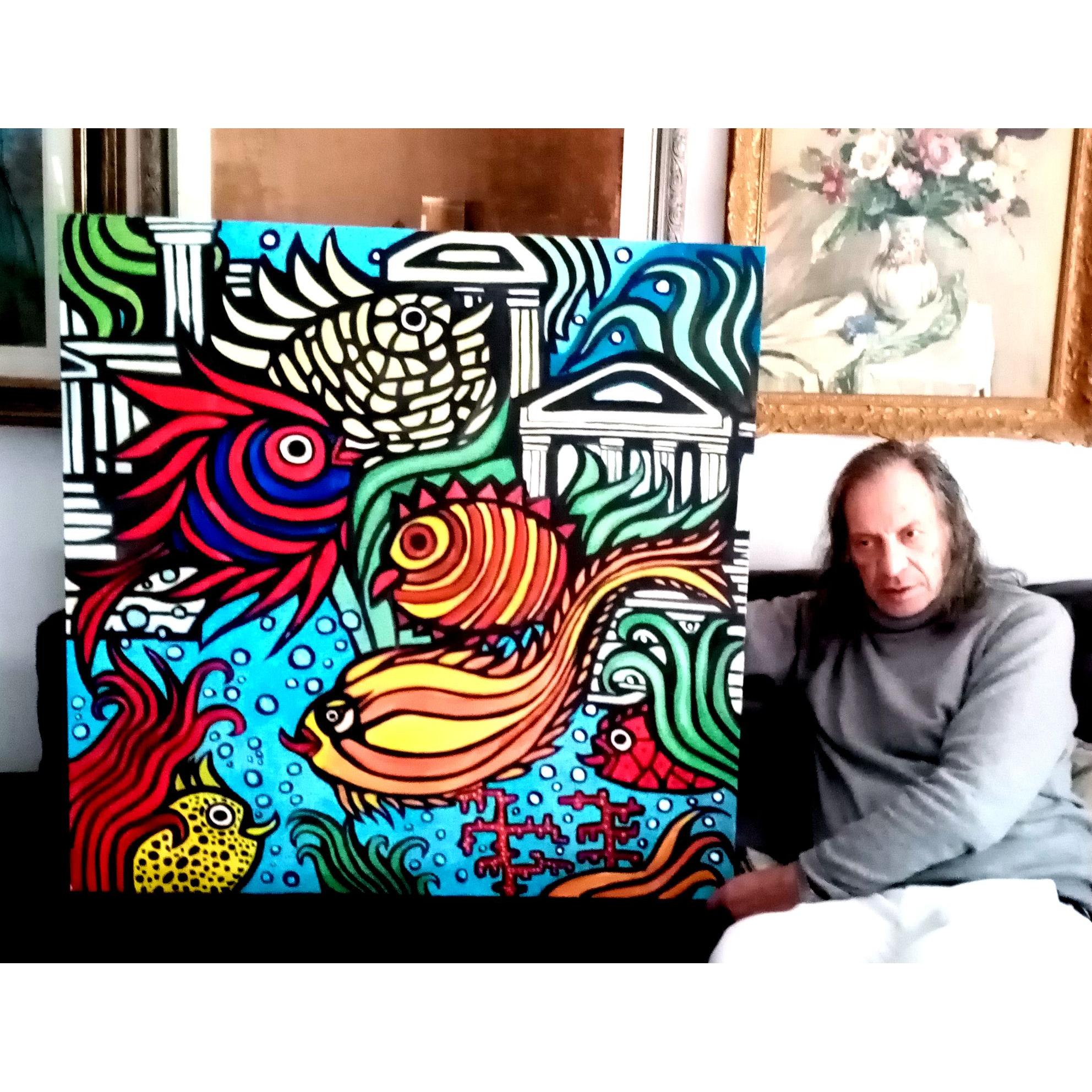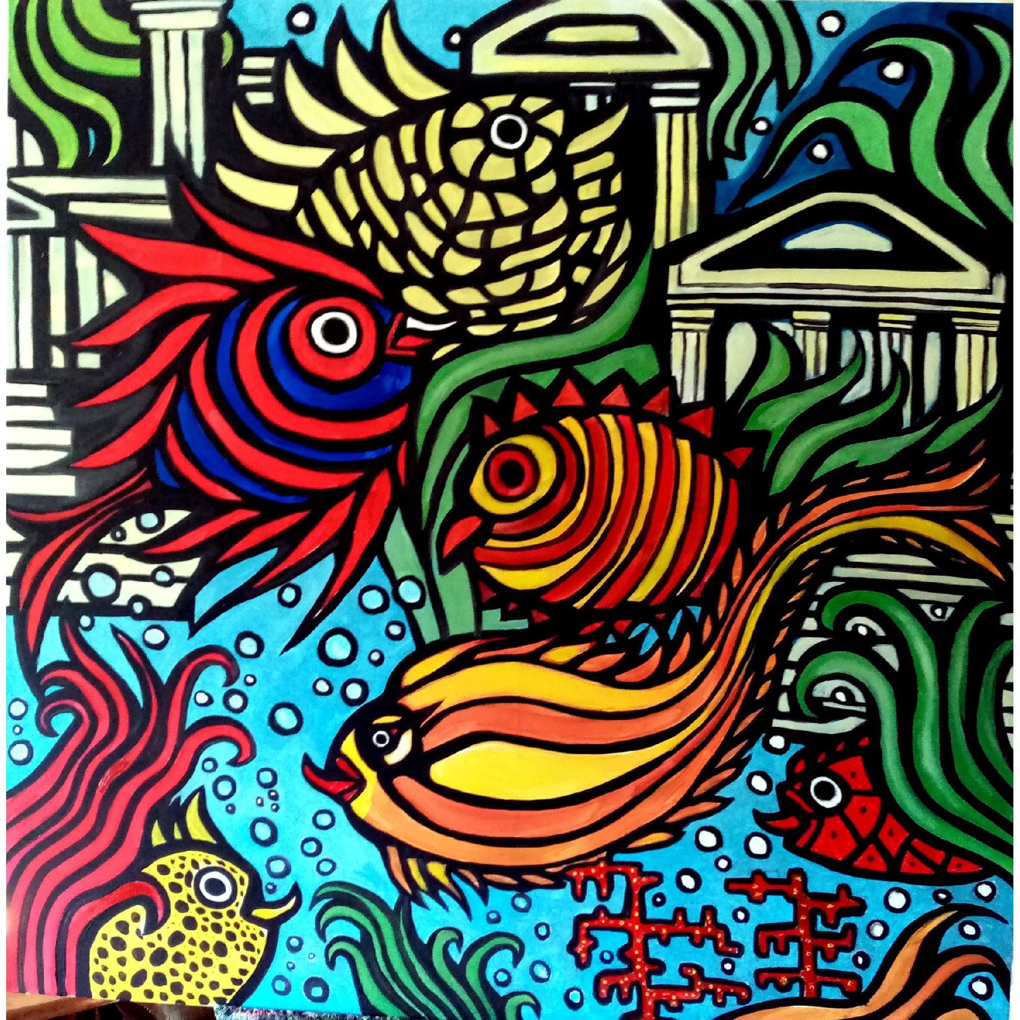 Mi è successo recentemente di sognare il mitico continente perduto di Atlantide, protagonista di tanti racconti più o meno fantasiosi ma interessanti...Col pennello e una grande tela ho tradotto in immagine il tutto con colorati pesci e rovine sommerse e il risultato mi auguro piaccia anche a Voi